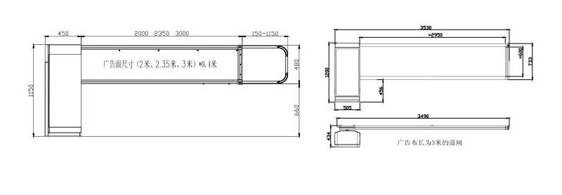 采用斜支撑方式,提升广告闸杆运行平稳性;