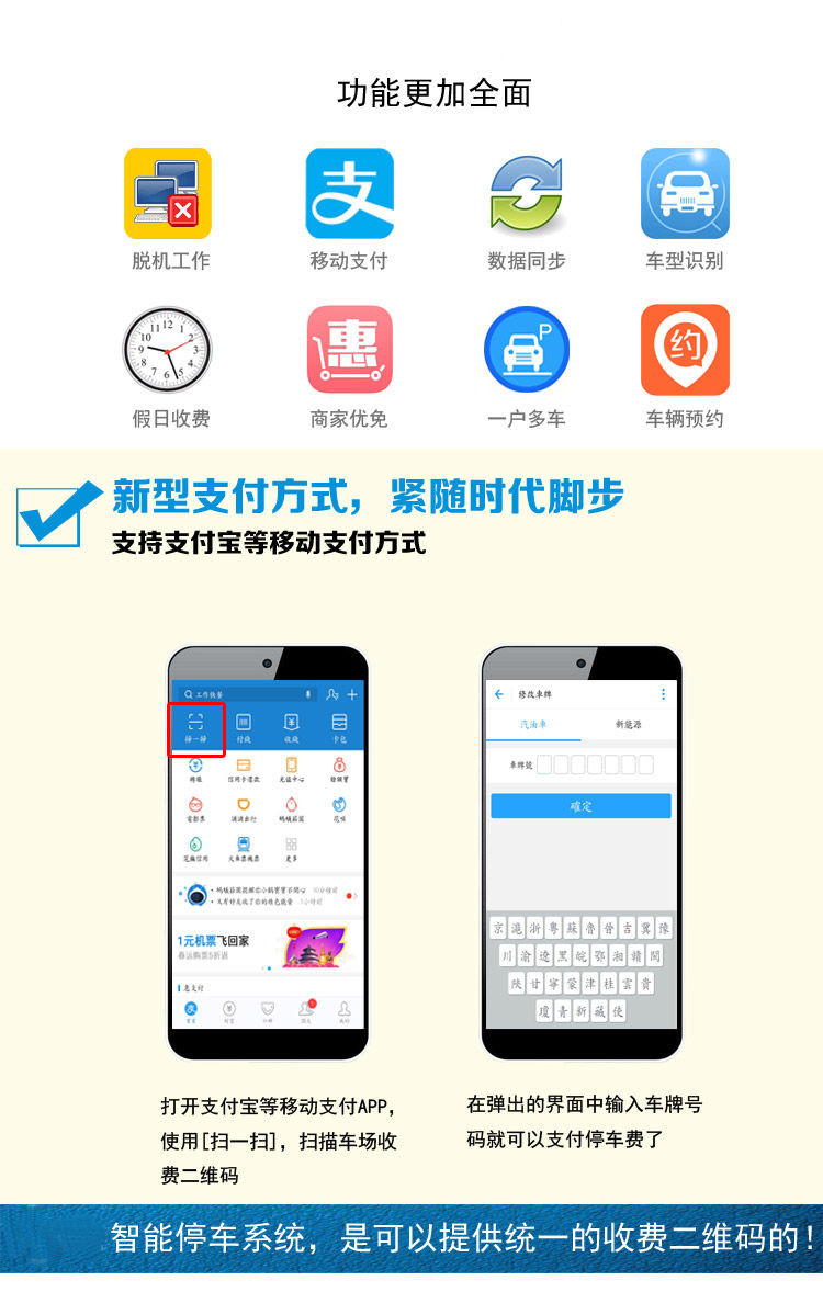 可在屏幕上生成二维码,支持微信、支付宝等移动支付方式;